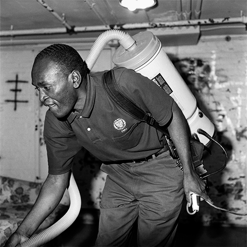"I was twenty when I finished college. Yes, I finished college. My supervisor, he was from Haiti and he was high-class there too. So when I started, when I picked up a mop, he told me, 'Don’t think about it Wilson, just do it.' But the managers, they are testing me—they leave pennies on the floor, in the corners, to see if I've cleaned well."