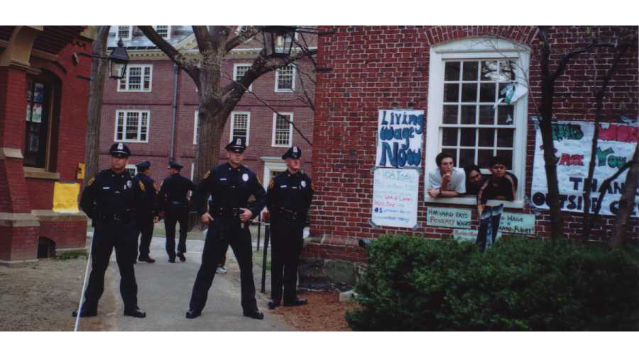Between 1994 and 2001, the endowment of Harvard University tripled, making the school the second wealthiest non-profit in the world. In the same years, Harvard heavily outsourced service jobs to lower-paying companies, resulting in wage cuts of up to 30% for custodians, food-workers and security guards graduated from Harvard in 1999 and spent the next three years heavily involved with the Harvard Living Wage Campaign and working on this project.